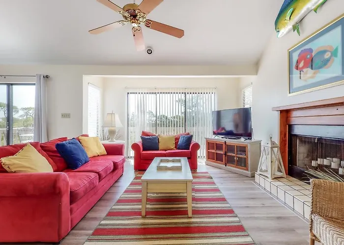 Located a mere 11 minutes' stroll from St George Lighthouse Local History Museum, this St. George Island villa is also just 550 metres from Bob Sikes Cut. The property has a fully equipped kitchen provided with amenities, such as a refrigerator, an oven, and kitchenware for self-catering.